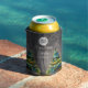 Wood Add your Logo Custom Text Christmas Tree Promotion Can Cooler. Watercolor colourful Christmas tree on a rustic dark wood print. Insert your logo into the template and customize the text, company name, address and contact information on the front and on the backside. Business promotion or giveaway for your clients and business partners.