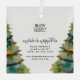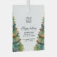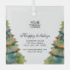 Add your Logo Custom Text Christmas Tree Promotion Glass Ornament. Watercolor colourful Christmas tree. Insert your logo into the template and customize the text, company name, address and contact information on the front and on the backside. Business promotion or giveaway for your clients and business partners.
