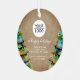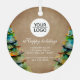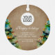 Rustic Add your Logo Custom Text Christmas Tree Promotion Metal Ornament. Rustic beige background and watercolor colorful Christmas tree. Insert your logo into the template and customize the text, company name, address and contact information on the front and on the backside. Business promotion or giveaway for your clients and business partners.