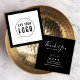 Stylish packaging insert card featuring your logo against a white square centre with an editable border colour (click customize and change background colour to change border colour from black to a colour of your choice) on the front and "Thank You" in modern calligraphy script with the rest of your social media and web information on the back. You can also change the back background colour by clicking customize and change background.