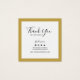 Stylish packaging insert card featuring your logo on the front against an editable background colour (click customize to change). On the back it has "Thank You" in modern calligraphy script with the rest of your social media and web information against a white square centre with an editable border colour (click customize and change background colour to change border colour to a colour of your choice).