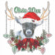 Cute Pygmy kid goat with her Santa hat and antlers adorned with red and green striped Christmas ornaments, surrounded by a holiday wreath of red poinsettias , pine cones, greenery and a big red bow. Add your own text . A © goatlady GetYerGoat™ original