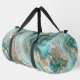 Add Name Aqua Blue Gold Marbled Duffle Bag