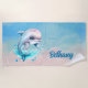 Add Name, Dolphin Swimming with Bubbles Pink Blue Beach Towel