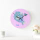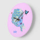 Add name Flower Fairy clock, girly pretty blue Large Clock