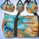 Add Name Flowers Aqua & Gold Floral Abstract Duffle Bag
