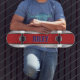 Add Name Initials, Red with Silver Grey Steel Look Skateboard