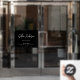 Promote your brand, store or business. This window cling which has an editable background (click customize and change its colour) and you can also add your social media handles and hashtags and website address to get your customers to connect with you online.