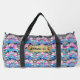 Add Name Pink Blue Art Deco Abstract Flowers Duffle Bag