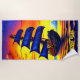 Abstract Stylized Blue Pirate Sailing Ship at Sunset - - See more great beach towels in my store.