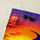Add Name, Stylized Blue Pirate Sailing Ship Sunset Beach Towel