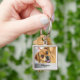 Add your photo and add your own text easily to personalize this cute premium popular square keychain. Upload your special photo and make your own cool custom key chain today! Shown is a pet picture. Add your dog or cat photograph and his or her name onto the matching silver metal (printed) look nameplate.