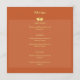 Add your photo to this wedding engagement menu. Great for engagement parties, weddings, and special events. Customize the text on the front and back of the menu. Terracotta and gold colours. Add one photo. Use the template to create your own photo wedding menu.