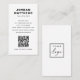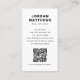 White or custom colour, modern, professional business card design with template fields for name, company name/title, logo (photo or other graphic), QR code and contact information. Change background colour, move and resize elements with the customization tool.
