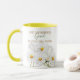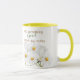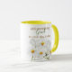 This light, delicate design features a bouquet of daisies. The text, on top, reads "add something Good to your day today". Design is on both sides of the mug.