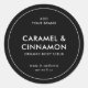 This minimalist modern product label has a round white border and an editable background colour (click customize to change). It makes a perfect label for candles, bath and beauty products, etc.