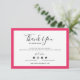 This thank you card has a white rectangle centre and an editable background colour (click customize to change background) on the front. On the back you can add your logo.