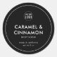 This minimalist modern product label has a round white border and an editable background colour (click customize to change). It makes a perfect label for candles, beauty, bath products, etc.