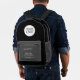 Add your Logo Custom Text Black Company Printed Backpack. Add your logo and customize the text, company name, address and contact information. Business promotion or giveaway for your clients and business partners.
