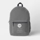 Add your Logo Custom Text Grey Company Printed Backpack. Add your logo and customize the text, company name, address and contact information. Business promotion or giveaway for your clients and business partners.