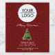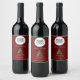 Add your Logo with a Custom Text Company Promotion Christmas Tree Wine Label. Artistic watercolor Christmas tree drawing on festive dark red background. Insert your logo into the template and customize the text, company information - business promotion or giveaway for your clients and business partners for holidays.