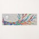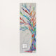 This decorative yoga mat features a print of a rainbow coloured tree on a pale grey background.