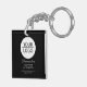 Add your Logo with Custom Text Company Promotion Black Keychain. Insert your logo into the template and customize the text, company name, address and contact information. Business promotion or giveaway for your clients and business partners.