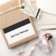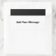 This white sticker has a black border at the top. There's black text. You can edit the text to create a personalized message.