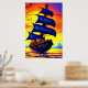 Add Your Message, Blue Sailing Pirate Ship Poster
