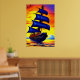 Add Your Own Message of Love or Inspiration to this Blue Sailing Ship Yellow Orange Sky - - See more great designs in my store.