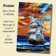 Add Your Message, Sailing Ship Blue Sea at Sunset Poster