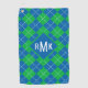 Add Your Monogram | Green & Blue Argyle Pattern Golf Towel