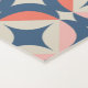 This mid-century modern design features a blue and coral geometric pattern.