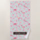 Add Your Name | Flamingo Feathers On Polka Dots Beach Towel