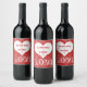 Delicate and pretty sweet vibrant ruby red, grey in silver shades and white Valentine style pattern with doodle lace hearts and cherry blossom branches making the background of a lovely personalized wine label for a special occasion.