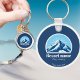 Keychain with a logo with a gorgeous blue mountain with a sunny background and the option to add a mountain or ski resort name. It's the perfect gift for tourists on a ski vacation!