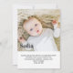 A simple First Birthday invitation featuring your own photo and the child's name over the top. You can edit all of the text plus the color of the text.