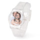 I only have one complaint. I ordered the watch with clear case and strap, and what was sent was white case and strap. I'm going to keep it because 1) it looks very nice in white, and 2) it would take too long to get a replacement made and sent in time for my occasion. Aside from the mix up with the color, the watch does look very good in white. The purple dial is actually sparkly which did not show in the online images. That was a nice surprise. If you like Swatch watches this is very similar to those. It's 33.6mm in diameter, 10.5mm thick, and 40.6mm lug to lug. Stainless steel case back says 3ATM/30m WR, so no swimming or showering or submerging this one. If you like Woodstock, this is a great choice.