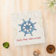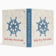 A cute, nautical watercolor design featuring a captain's wheel & script text phrase.