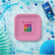 Add Your Text Name Photo Image Here Pink Square Paper Plate