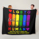 Add Your Text, We Are All Human LGBT Rainbow Black Fleece Blanket