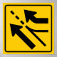 International style road and highway warning sign advising of an added lane entering from the right.