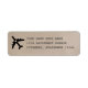 Typewriter font return address label with a romantic airplane and heart design on kraft paper background that designed for a retro or vintage travel theme destination wedding, bridal shower or a party to celebrate the starting of a travel lover's long adventure. The black airplane and text colors can be change d by clicking 'customize further'. Other color versions of our our © airplane heart design can be found in the Custom Paper Works Zazzle designer store.