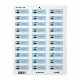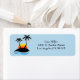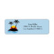 Return address label shown with a palms beach graphic print design on a blue background colour.