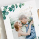 Elegant watercolor eucalyptus wedding invitation with a personalized photo.