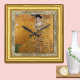 Vintage Wall Clock featuring famous artwork "Adele - the Lady in Gold" by Gustav Klimt framed in golden picture frame underlined with old decorative rustic canvas fabric background.