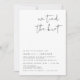Cette invitation à la réception élégante présente une police manuscrite pointue et un design moderne et minimaliste. Il est parfait pour tout couple contemporain, industriel ou minimal. Modifiez le libellé *most* et toutes les couleurs pour répondre à vos besoins et ajoutez une photo à l'arrière pour une touche personnelle.