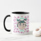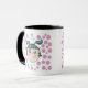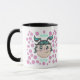 A fun mug for ADHD adults and children. It has a cute illustration of a little girl with an adorable smirk, and the saying "ADHD CUTE". She's surrounded by pink buttons because she's as cute as a button. This mug is designed to celebrate/support ADHDers and raise awareness for the positive and unique personality traits that come along with it.