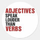 Adjectives speak louder than verbs classic round sticker
