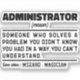 Funny Administrator Sayings "Administrator Someone Who Solves A Problem You Didn't Know You Had In A Way You Can't Understand". Grab this Funny Administrator design as a funny gifts for an awesome mom, dad or friend.
